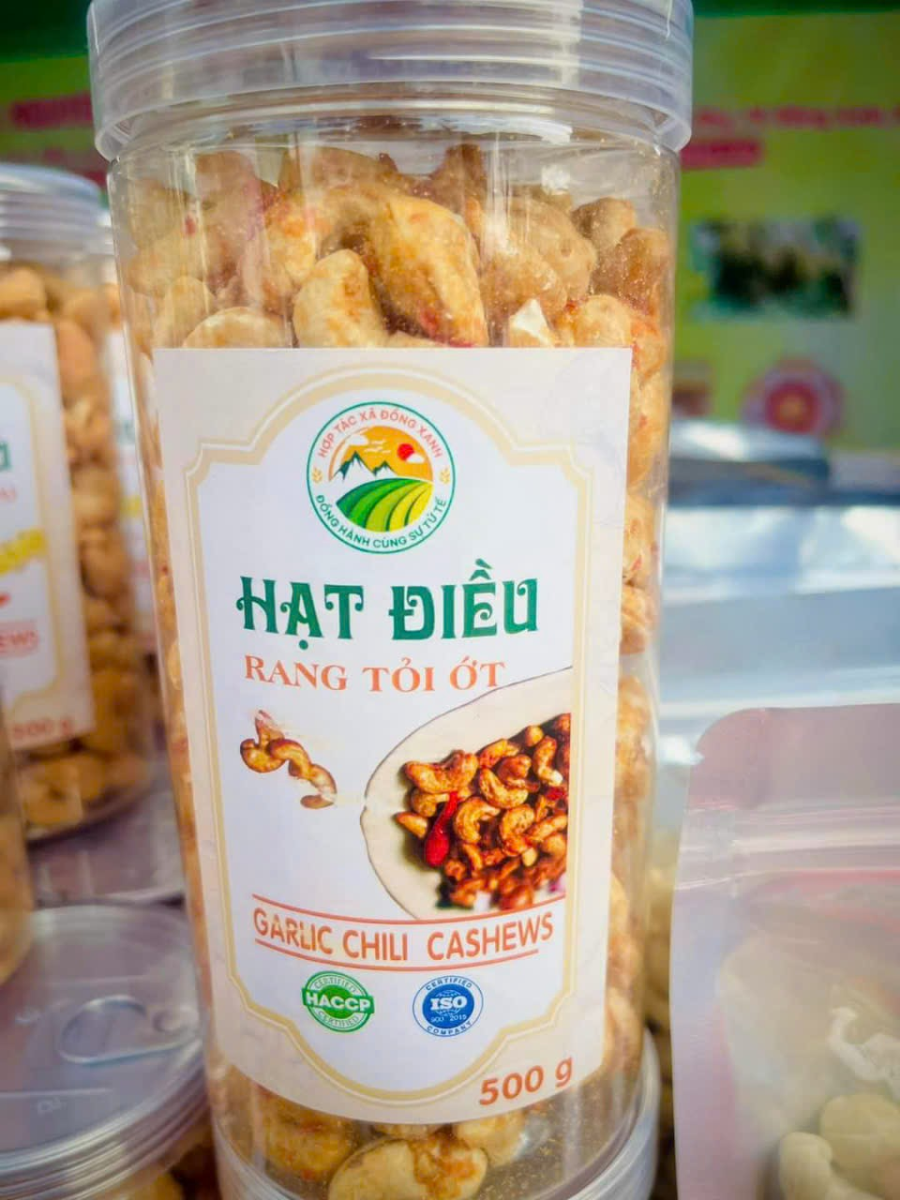 Hạt điều được tẩm bởi tỏi, ớt cay nồng, tạo nên một hương vị độc đáo, không giống với bất kỳ loại hạt điều nào khác. Sự hòa quyện giữa vị cay nồng của ớt và hương thơm của tỏi tạo nên một sự phong phú, tinh tế cho các thực khách.